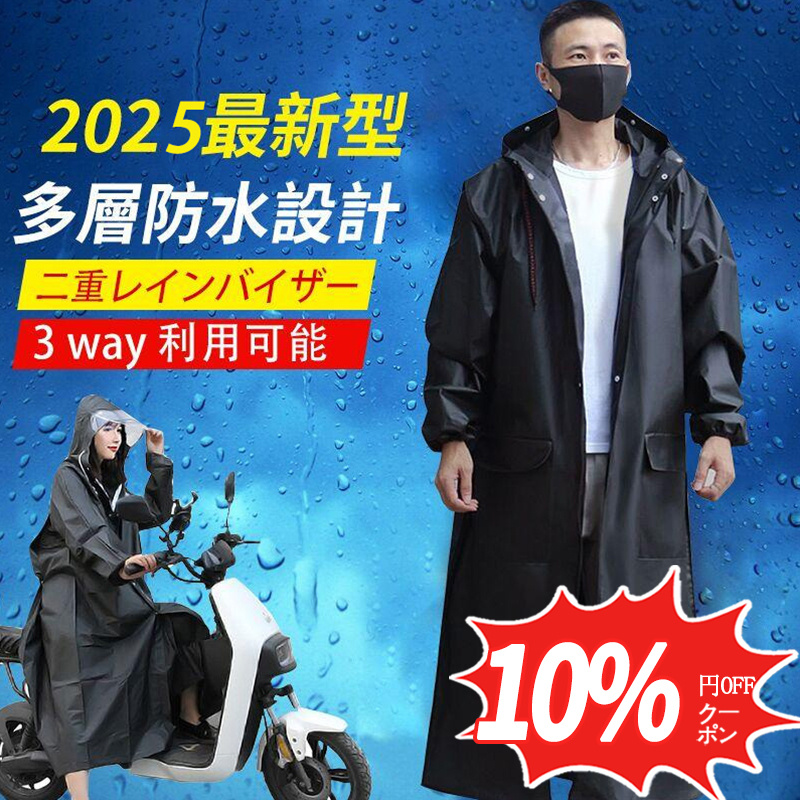 売れ筋No.1 レインポンチョ レインコート 自転車用 レインウェア 雨具 カッパ 反射テープ ポケット付き ツバ付き 通学通勤 梅雨 撥水 大きい