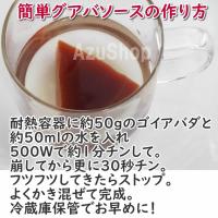 | グアバソースの作り方 レンジで簡単! 耐熱容器に50gのゴイアバーダと、水50mlいれます。 レンジ500wで約1分加熱します。 スプーンで少し刻んで熱が通りやすくします。 更にレンジ500wで約30秒加熱します。(回りがフツフツしてくるまで) スプーンでなめらかにソース状にして、保存容器に移して冷蔵庫で冷やして完成! トーストや、パンケーキ、ヨーグルトにと、お早めにお召し上がりください。 |