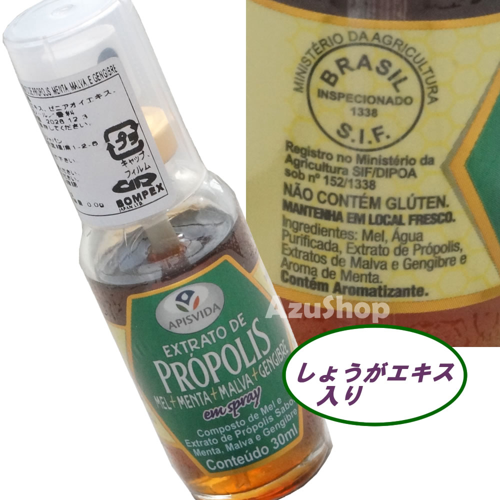 プロポリススプレー ジンジャーエキス ミント ゼニアオイエキス入り 30ml ブラジル産 SIF取得