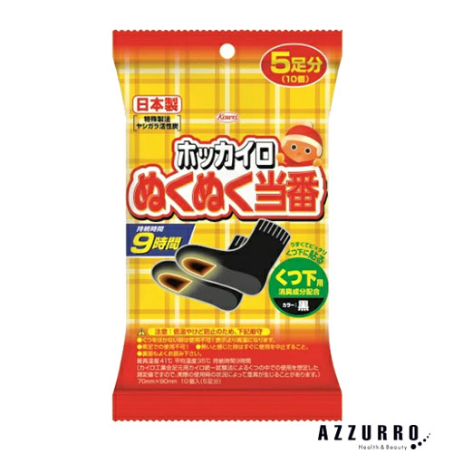 納期情報:在庫表示個数に関らず3〜6日程度で出荷できます(日月祝を除く) 冬の通勤・通学時にいつでも手軽にぽっかぽか。 持続時間が自社最長9時間。温度立上がりも早い。 ぬくぬく当番シリーズのくつ下用カイロ。 自社従来品に比べて温度の立ち上がりも早く、 持続時間も9時間と長時間暖かさをキープします。 ・くつ下に貼るタイプ。 ・色は靴になじみやすいよう黒色。 【使用方法】 使用直前に開封し、シールをはがしてもまずにくつ下(足の裏つま先部分)に貼ってください。 すぐに靴を履いてください。 |