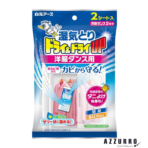 納期情報:在庫表示個数に関らず3〜6日程度で出荷できます(日月祝を除く) ・吸った湿気がゼリー状に固まるタイプの除湿剤です。 ・洋服ダンスなどに吊り下げる薄型タイプです。 ・収納空間の気になるニオイ*を消臭します。(ニオイ=カビ臭・汗臭・体臭) ・カビの発育を抑えます。 ・衣類保管時の黄ばみ*を防ぎます。(窒素化合物による黄ばみ) ・気になるダニを収納空間内に寄せつけにくくします。 ・防虫剤と一緒に使えます。 【使用方法】 ・外袋から本品を取り出し、そのまま洋服ダンスやロッカー内に吊り下げてお使いください。 ・薬剤全体がゼリー状になったら、新しい「ドライ&ドライUP洋服ダンス用」とお取替えください。 *密閉性の高い環境でご使用いただくと、より効果的です。 *外袋を開封すると湿気が始まりますので、一度に全部(2シート)お使いください。 |