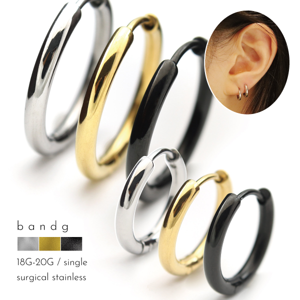 ピアス フープ ステンレス サージカルステンレス 金属アレルギー ワンタッチ キャッチレス リング 中折れ 18G 20G 片耳用