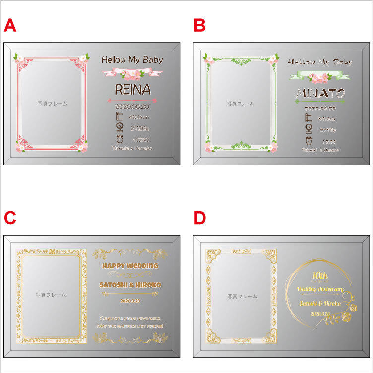 名前りプレゼント。オリジナル彫刻を施したフォトフレーム(写真立て)は,出産祝い,誕生祝い,結婚祝い,クリスマスプレゼント などにおすすめです。名前彫刻・記念日彫刻をすれば、世界にたった一つのオンリーワンの名前入りプレゼントになります。各種記念品,お祝い,名前入りプレゼント,にはソーダガラス オリジナル加工フォトフレームがおすすめです。