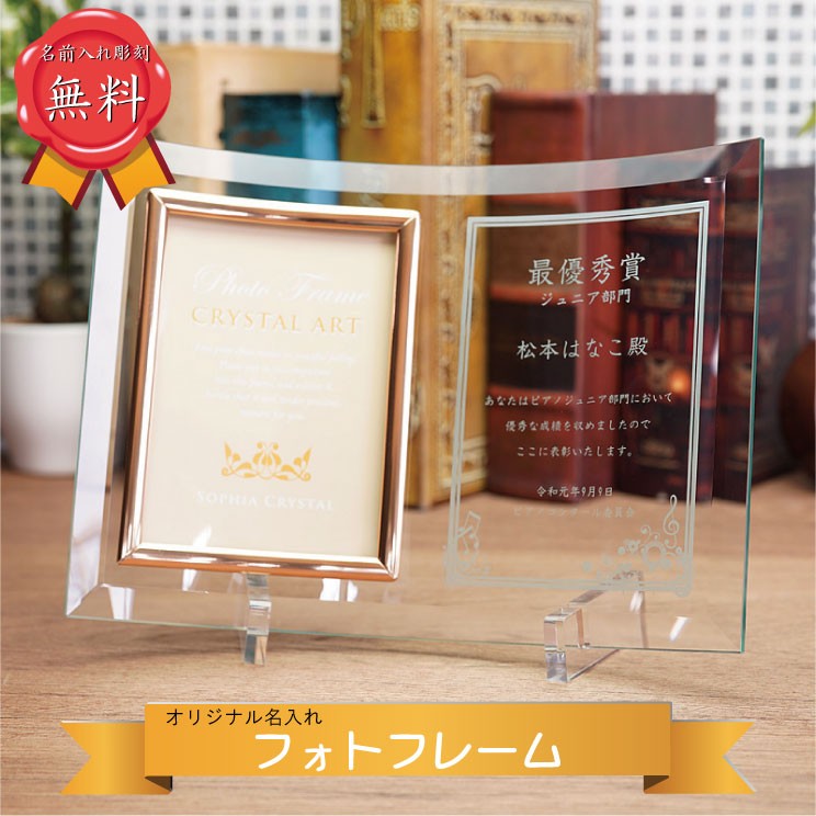名前りプレゼント。オリジナル彫刻を施したフォトフレーム(写真立て)は,出産祝い,誕生祝い,結婚祝い,クリスマスプレゼント などにおすすめです。名前彫刻・記念日彫刻をすれば、世界にたった一つのオンリーワンの名前入りプレゼントになります。各種記念品,お祝い,名前入りプレゼント,にはクリスタルガラス オリジナル彫刻フォトフレームがおすすめです。