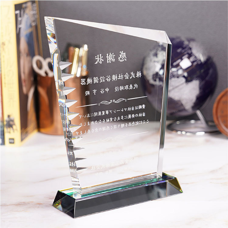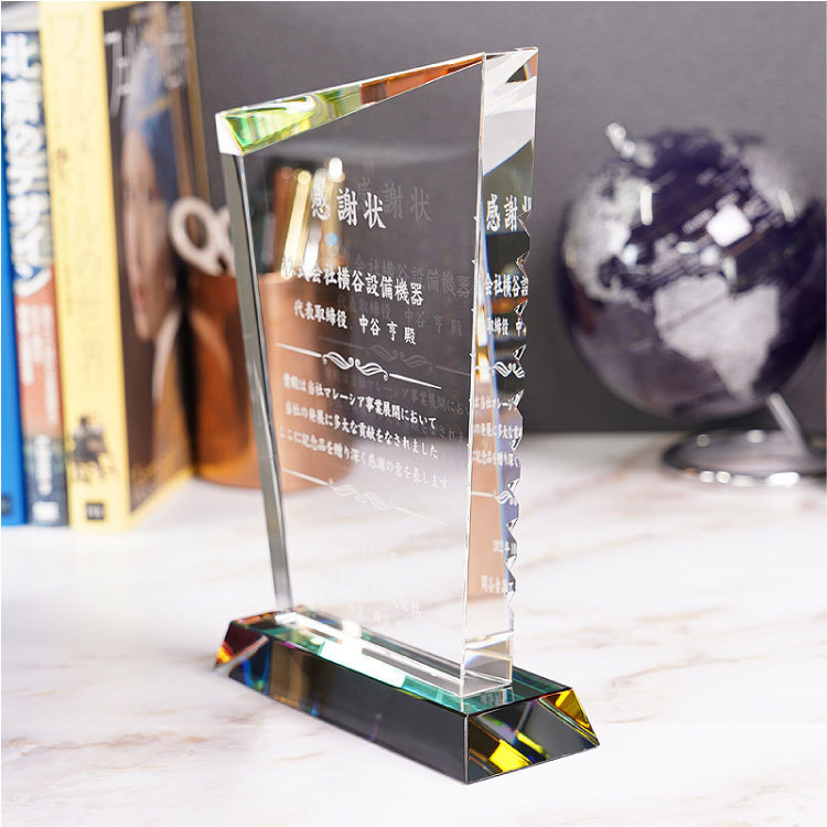 表彰 認定 感謝状 会社記念 周年記念 贈答品 卒業証書 に非常に適した 盾 に オリジナル彫刻 を!! 盾 (Plaque)にガラスエッチング(サンドブラスト)を施して、高級感のある 表彰盾 認定盾 感謝状 会社記念盾 周年記念盾 贈答品 卒業証書に変わるクリスタルガラス記念品をお作りします。