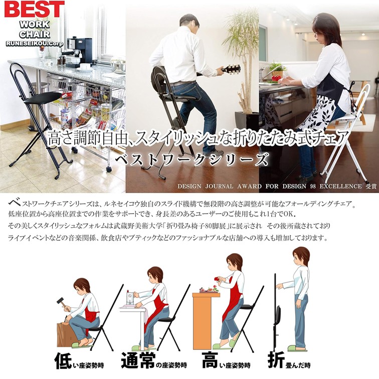 ・座面高さ調節自由、スタイリッシュな折り畳みチェア。