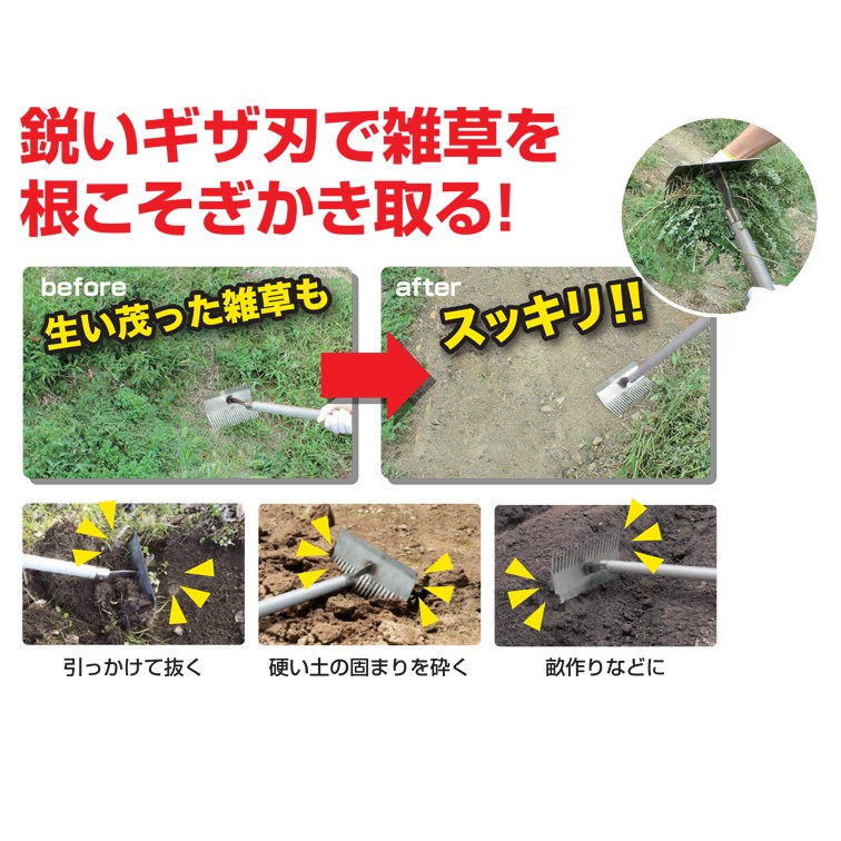 ・鋭いギザ刃で雑草を根こそぎかき取る!生い茂った雑草もスッキリ!