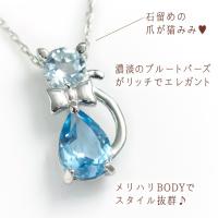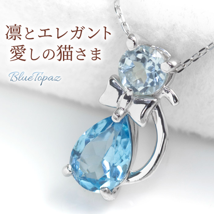 ブルートパーズ 猫 ねこ ネコ ネックレス ペンダント 大粒 K10 K18ホワイトゴールド 18金 11月誕生石 彼女 妻 嫁 女性 誕生日プレゼント 20代 30代 クリスマス