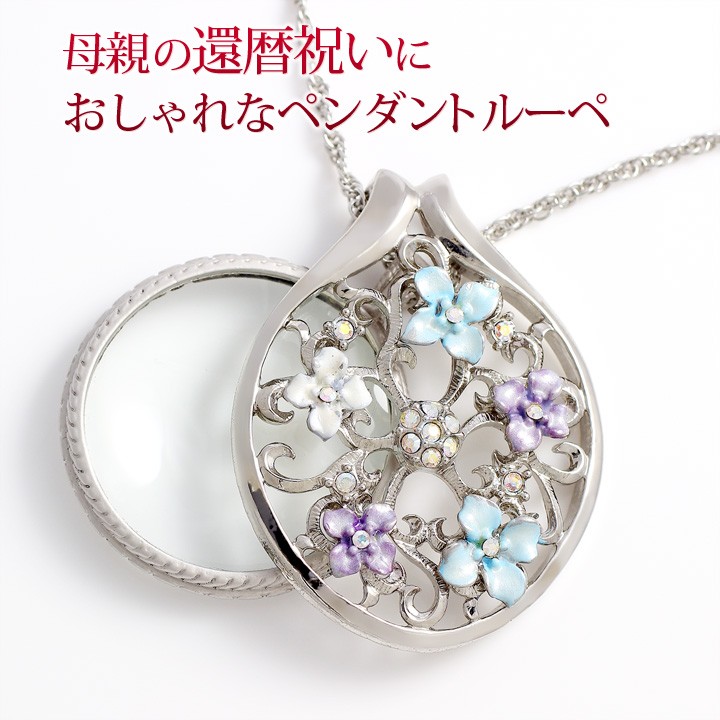 母 義母 女性 誕生日プレゼント 50代 60代 60歳 古希 紫 喜寿 クリスマスプレゼント あすつく対応/老眼鏡を出す手間もなく、使いたい時にサッと使えるペンダントルーペ♪周りから見ても「歳を重ねてもお洒落な女性だな」と上品な淑女に見られること間違いなしです!母の日に娘から母へ、敬老の日に孫から祖母へ、還暦祝いや誕生日のプレゼントにも最適ですね。
