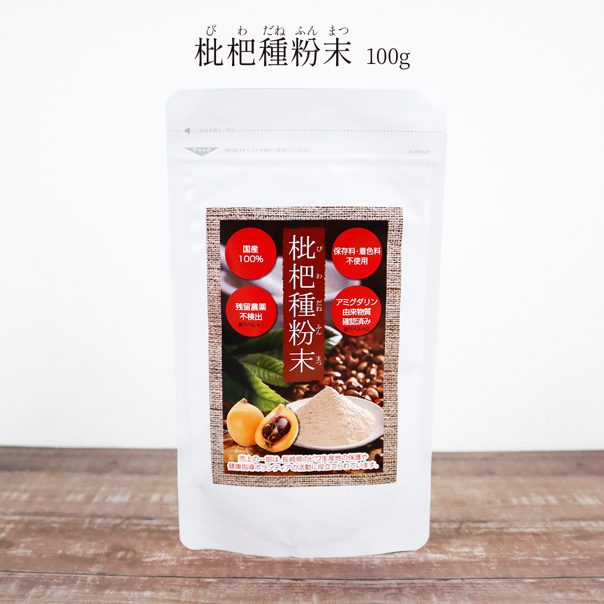 枇杷種粉末 100g 枇杷の種 粉末 長崎産 茂木ビワ種100% びわ タネ 飲みやすい びわの種 国産 健康食品