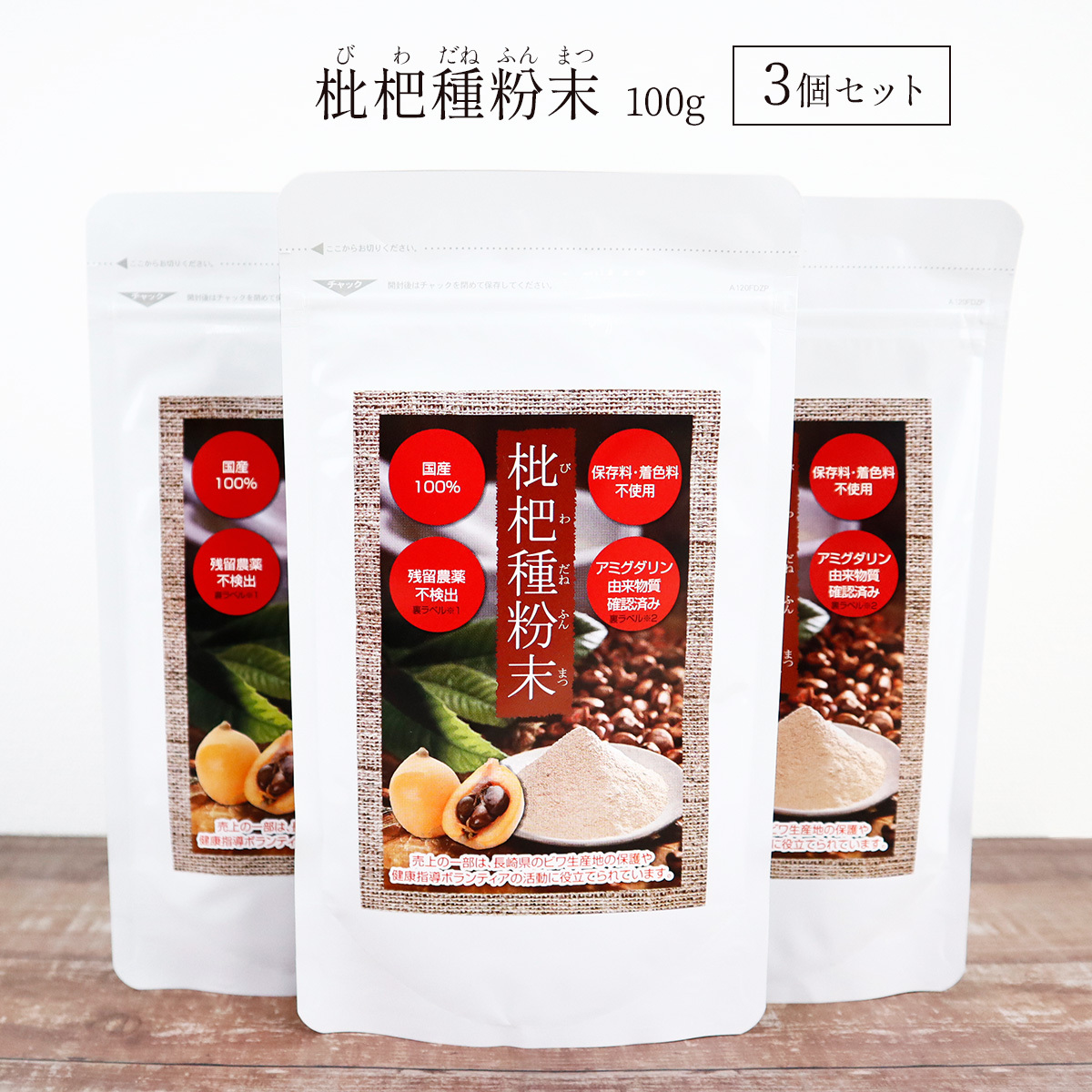 枇杷種粉末 100g 3個 セット 枇杷の種 粉末 長崎産 茂木ビワ種100% びわ タネ 飲みやすい びわの種 国産 健康食品