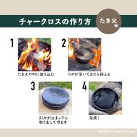 説明 | チャークロスとは、布を炭化させたものです。 燃やすだけでは炭化できません。作り方は付属の説明書をご覧ください。 火口と併用して火種を作り、焚き火にご使用ください。 【キット内容】 缶/クロス(約5×5cm)15枚/作り方説明書 【ご注意】 ※火から降ろした後の冷却が不十分なままフタを開けるとチャークロスが発火(赤熱)することがあります。直ぐにフタを閉め鎮火させてください。 ※チャークロス作成中の火傷には十分ご注意ください。 |