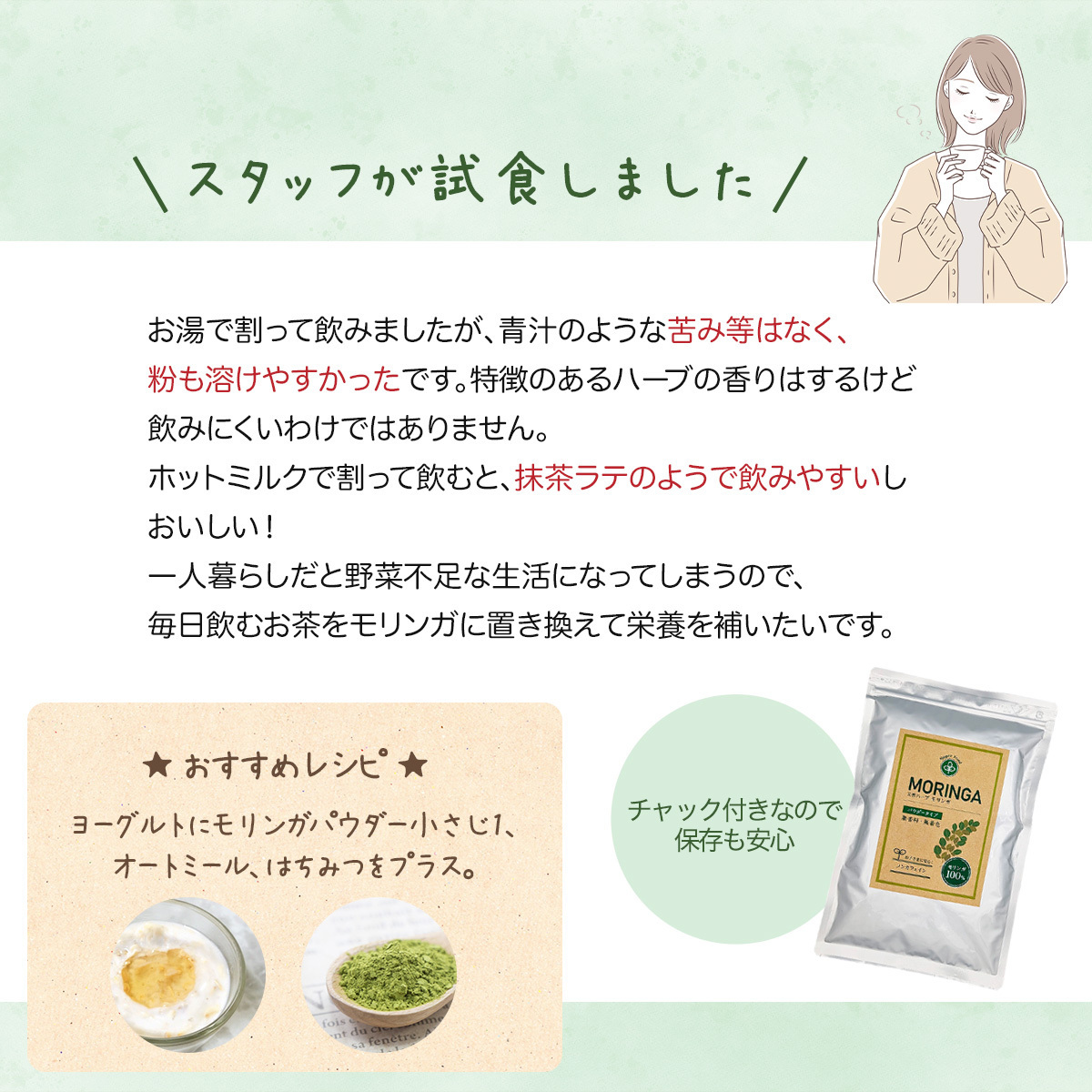 | 成分or素材or材質 | 乾燥モリンガ(インド産) |