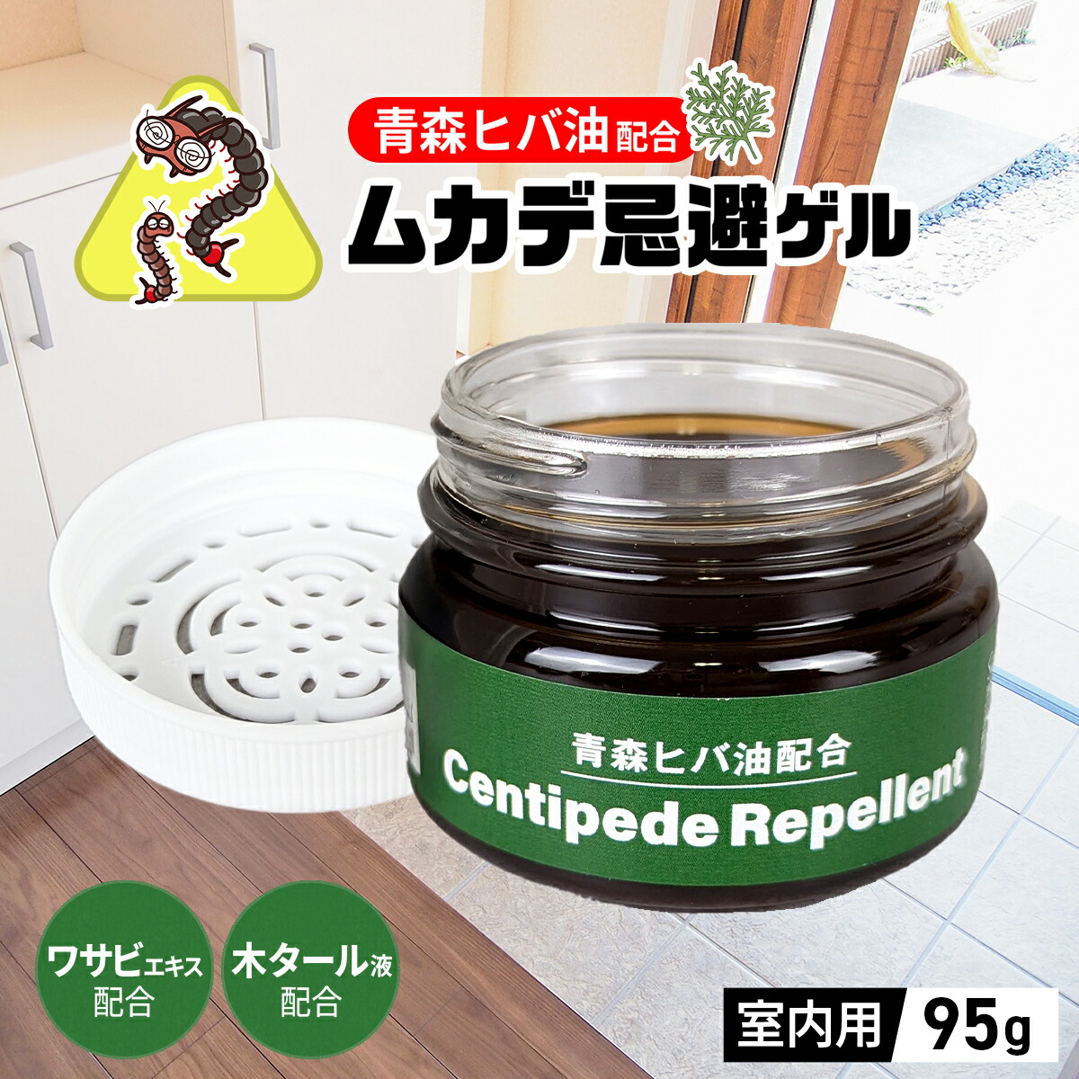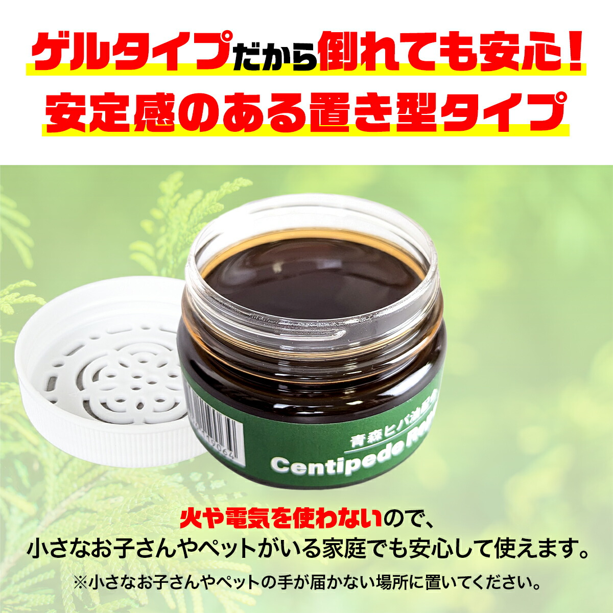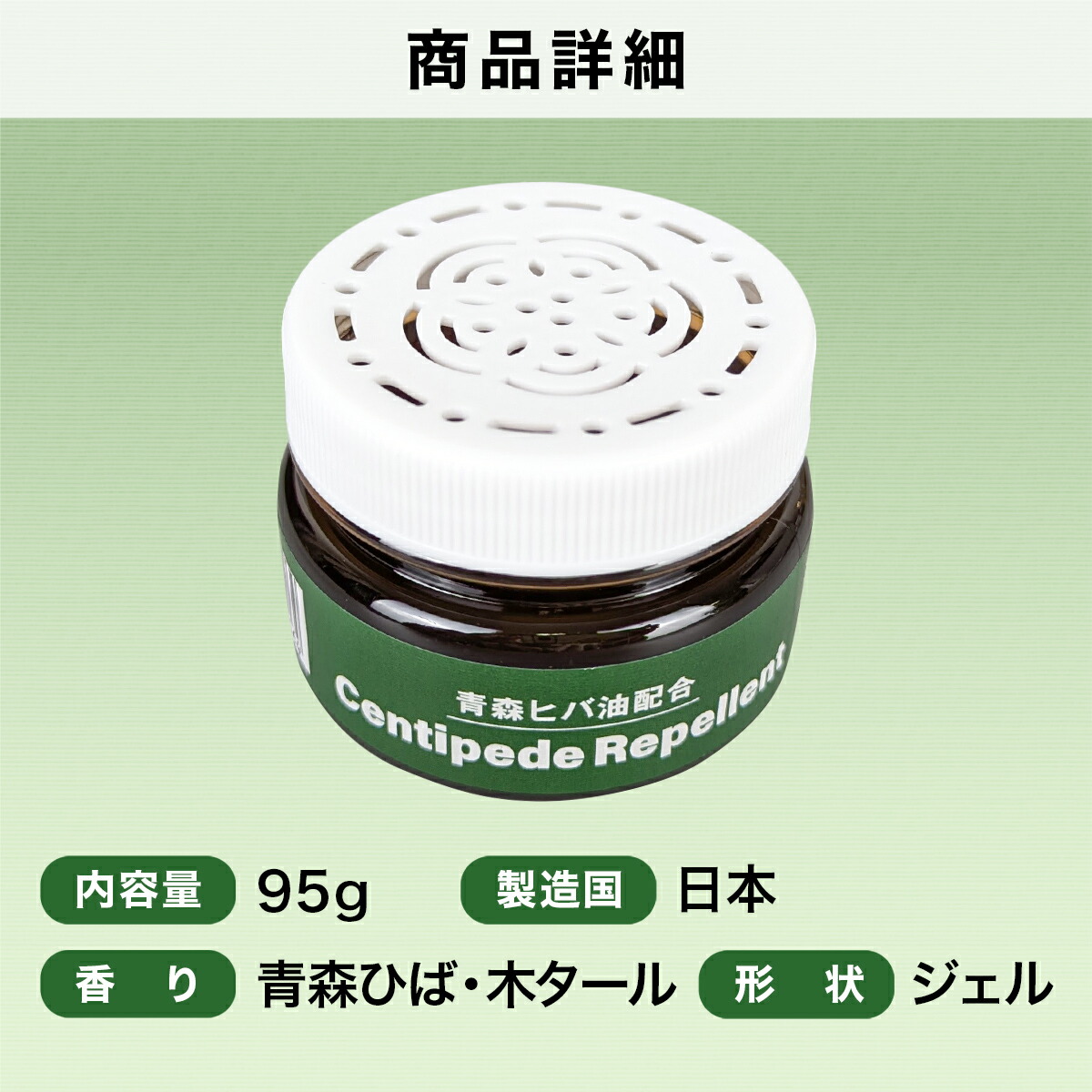 | 説明 | 天然精油の青森ヒバ油とワサビエキス配合のムカデ忌避剤です。 約90日間持続で経済的! 更にムカデの嫌う木タール液配合で忌避率アップ! ゲルタイプなので倒れてもこぼれません。 香りの系統→青森ひば, 木タール 色→黒 |