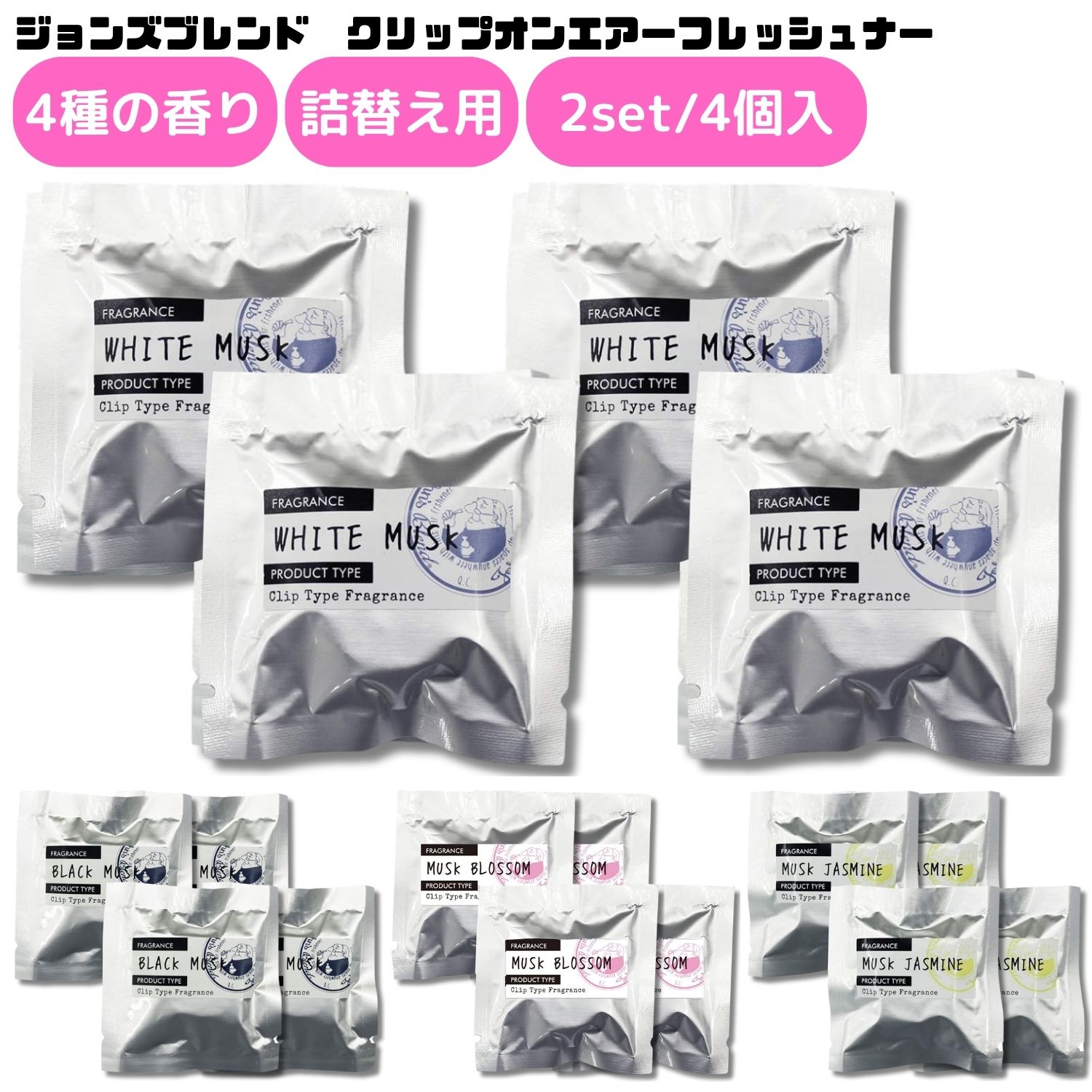 | 商品名 | ジョンズブレンド 車用芳香剤 【詰め替え】 クリップ オン エアーフレッシュナー 2セット4個入 |