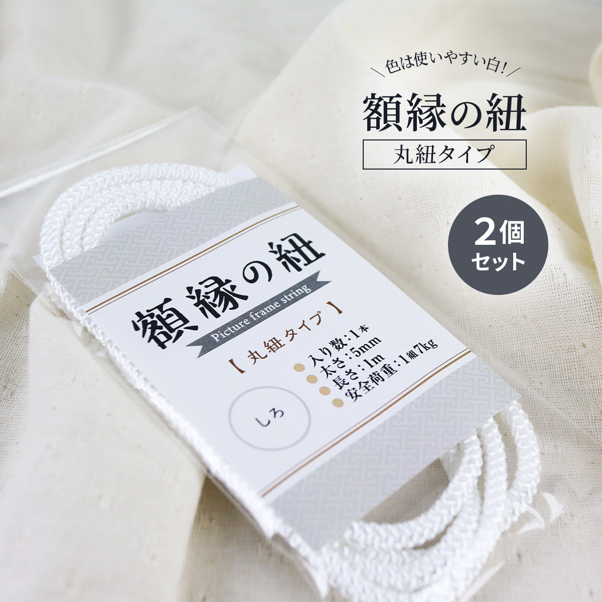 | 説明 | 額縁を吊るすための紐です。 約5mmの太さで上部に作られています。 色は主張せず使いやすい白です。 色:白 耐荷重:約7kg |