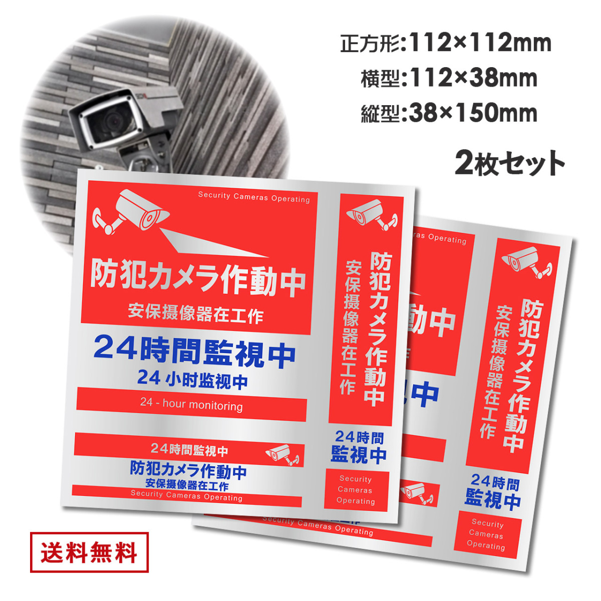 防犯カメラ ステッカー 正方形 縦型 横型 ×2枚(計6枚) 日本語 中国語 英語 対応 日本製 屋外 防犯カメラ作動中 シール