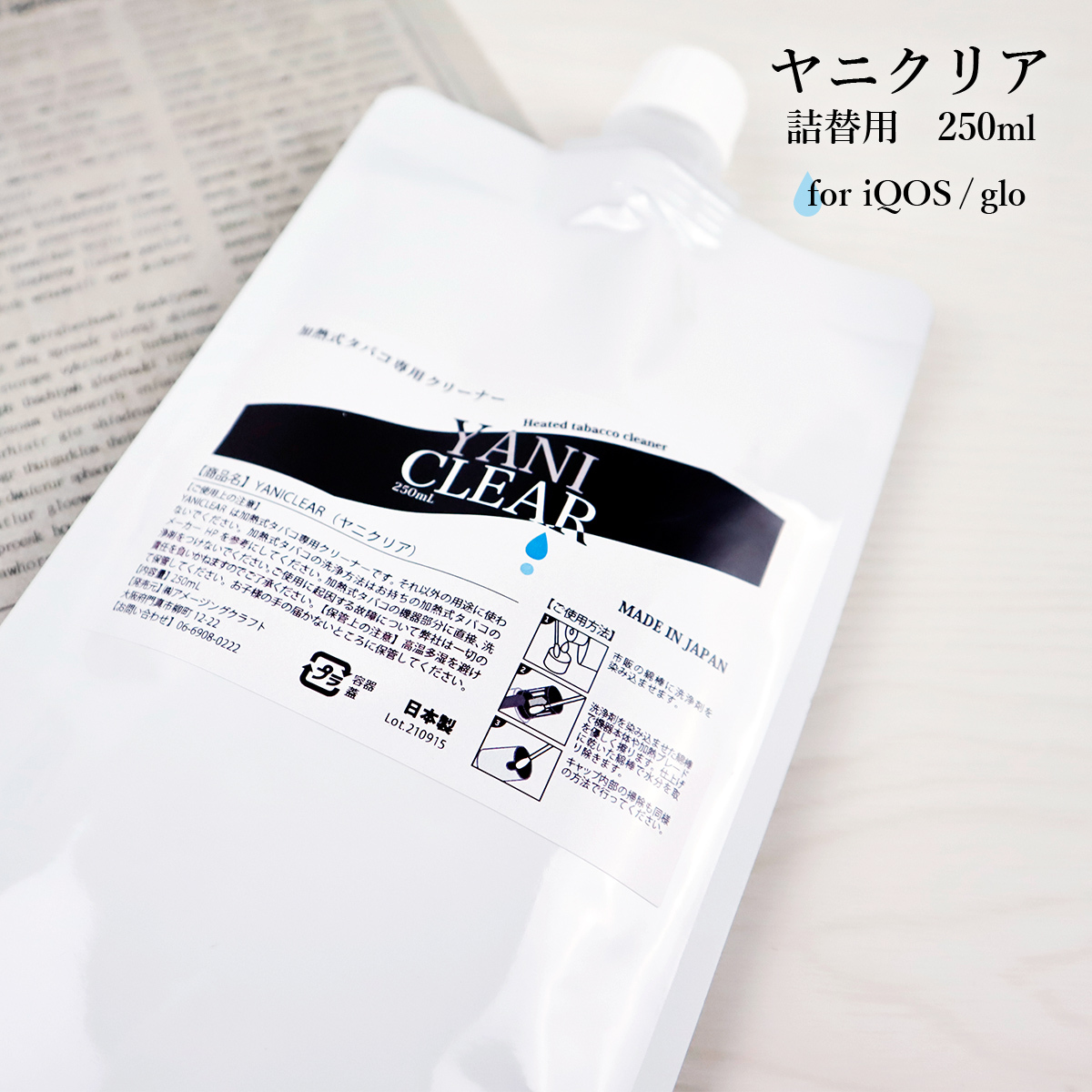 加熱式タバコ 専用 クリーナー ヤニクリア 250ml 詰め替え用 クリーニング 電子タバコ 洗浄液 電子たばこ