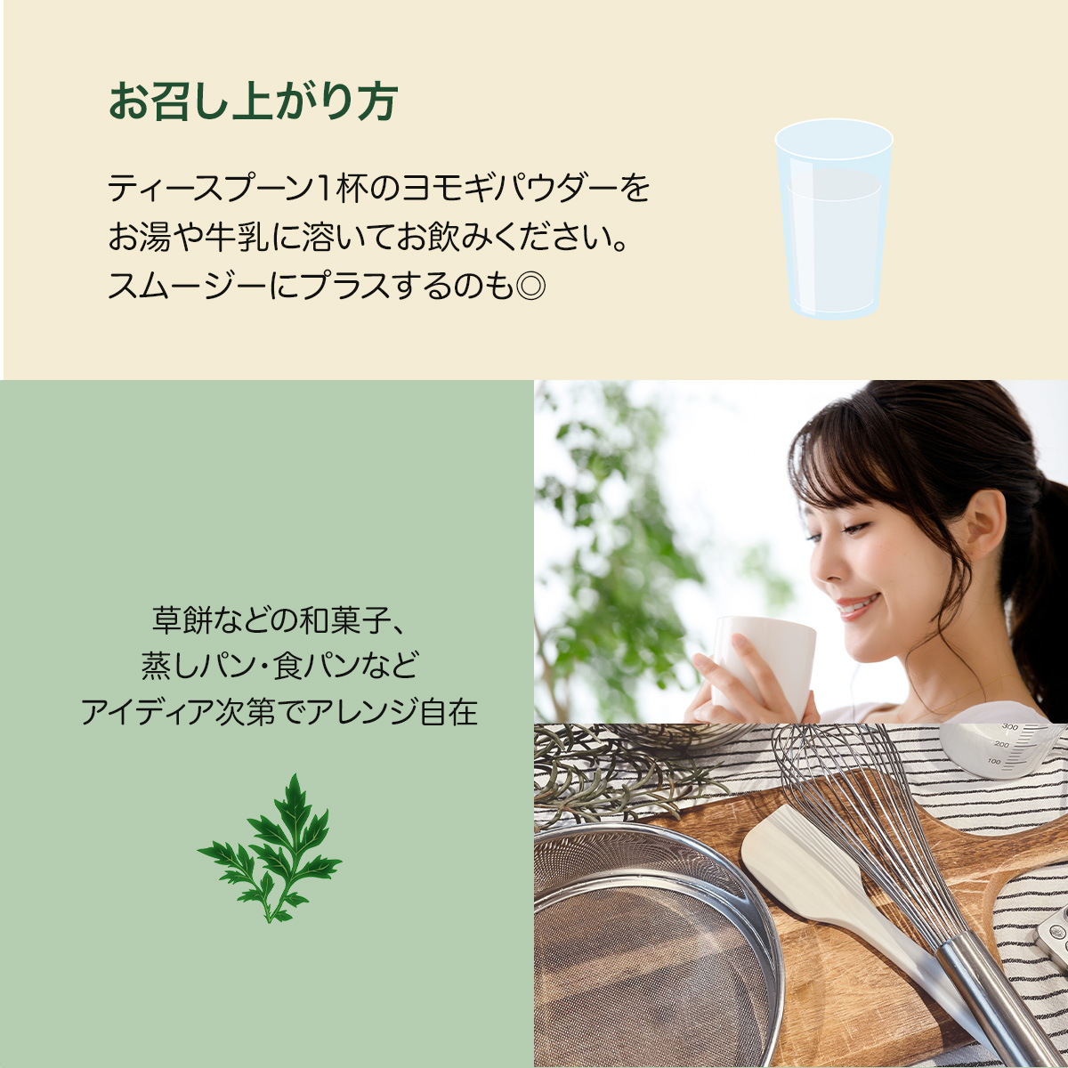 お茶や草餅、スイーツなどにご使用頂けます。