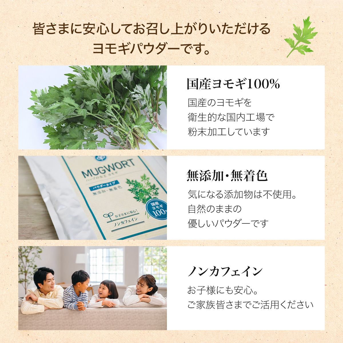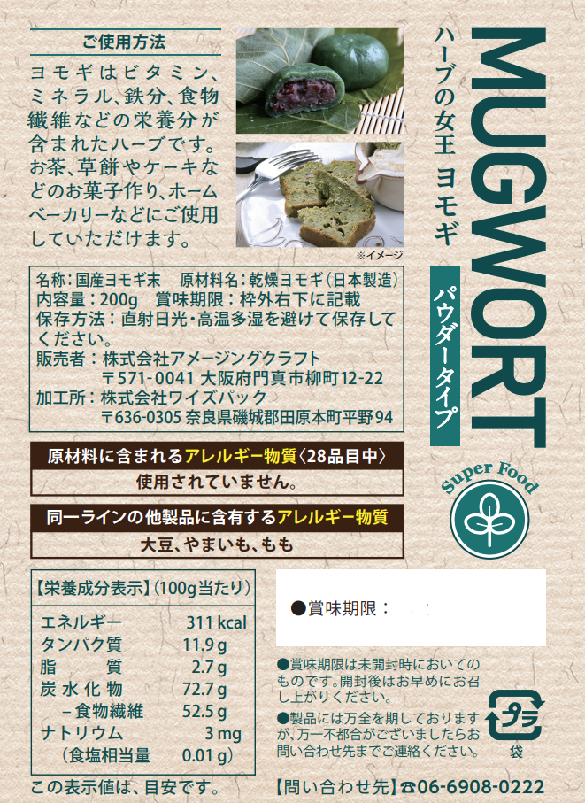 古来より漢方でも使用されている国産よもぎの粉末です。