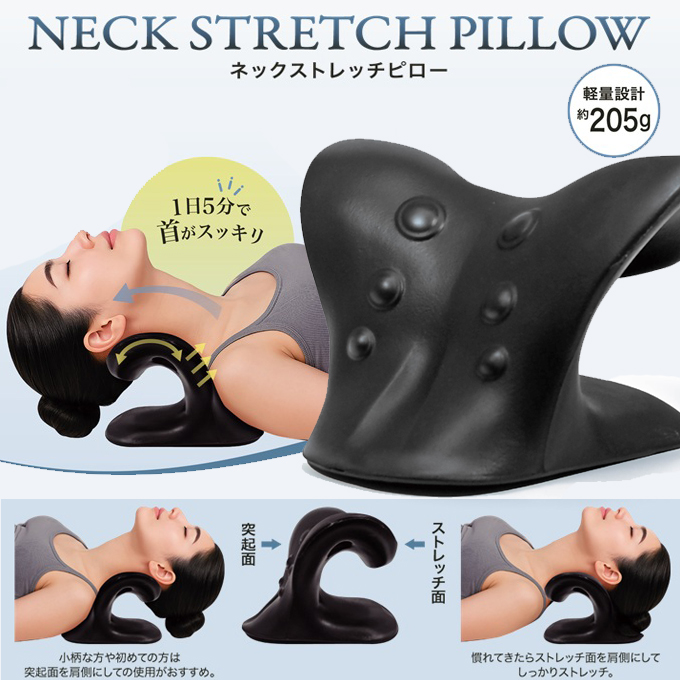 ネックストレッチピロー 1日5分で首元スッキリ ネックピロー ストレッチ 首伸び 枕 マクラ スマホ首 肩こり ストレートネック