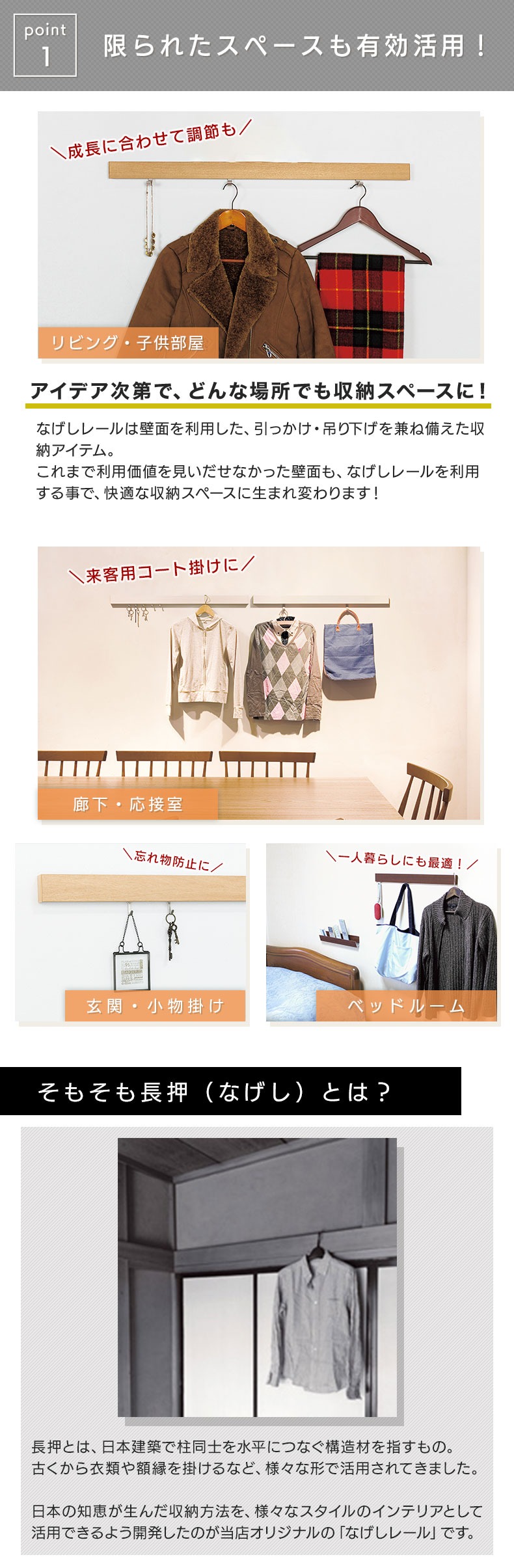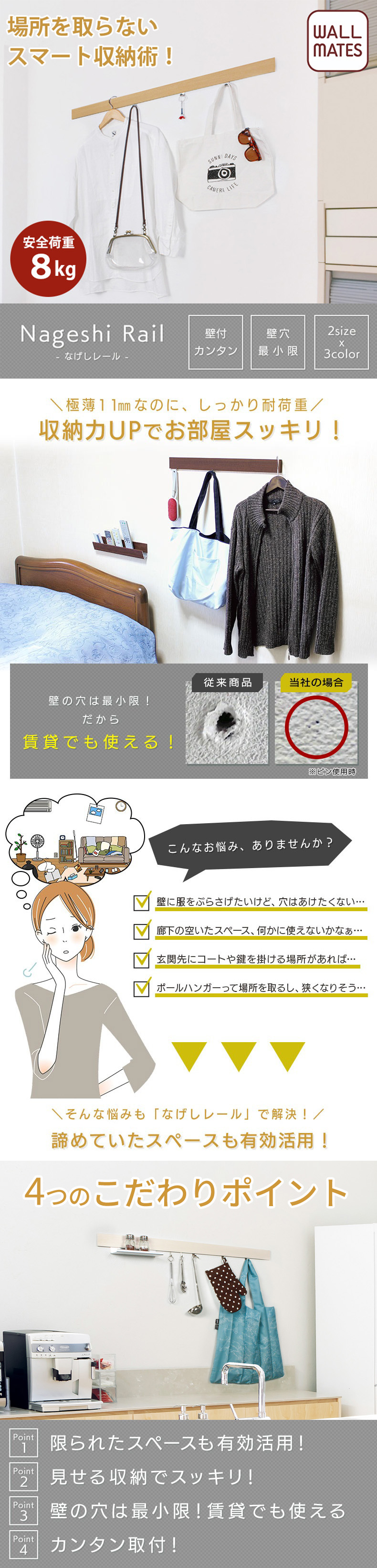 ウォールハンガー 壁掛け 長押フック おしゃれ 帽子掛け 石膏ボード 壁 賃貸 取り付け なげしレール 90cm