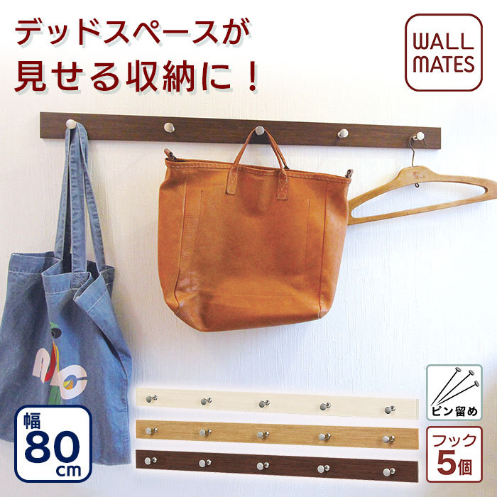 ウォールハンガー 壁掛け ハンガ ーフック 帽子掛け 石膏ボード 壁 画鋲 賃貸 取り付け ライン5連フック 80cm