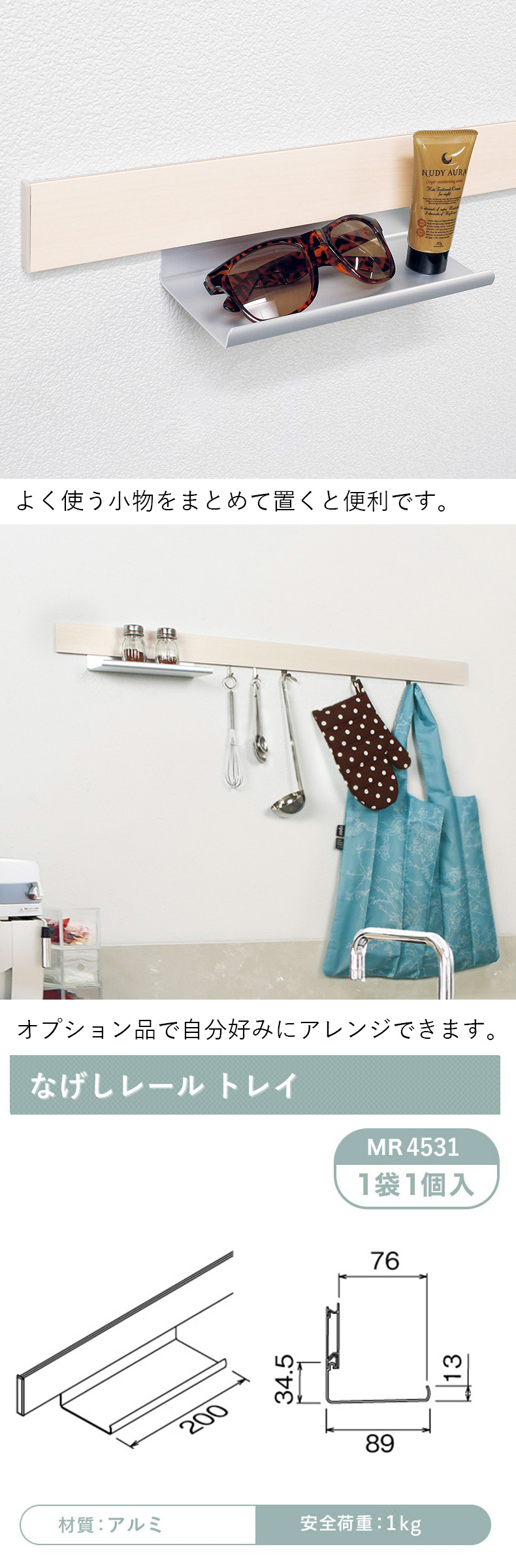 壁掛け なげしレール用 オプション トレイ |オプション品 小物をまとめて収納 なげしレール専用 簡単取り付け 省スペース 玄関・洗面所に最適 日本製 MR4531