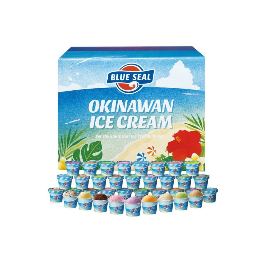 沖縄のアイスといえば「ブルーシール」。沖縄に行けば必ず食べるアイスがブルーシールです。2019年4月リニューアルして発売された商品です。沖縄県産素材を使用したフレーバーと南国素材を使用したフレーバーの16種類が味わえるセットです。【セット内容】110ml×36個(16種類)● バニラ×2個 ●チョコレート×4個●ストロベリー×2個 ●バニラ&クッキー ×4個●紅イモ×2個 ●ウベ×2個●シークヮーサーシャーベット×2個 ●塩ちんすこう×2個●サトウキビ×2個 ●バナナスザンナ×2個●サンフランシスコミントチョコ×2個 ●塩ミルク×2個●マンゴー×2個 ●琉球ロイヤルミルクティー×2個●パインソルベ×2個 ●ピスタチオ×2個