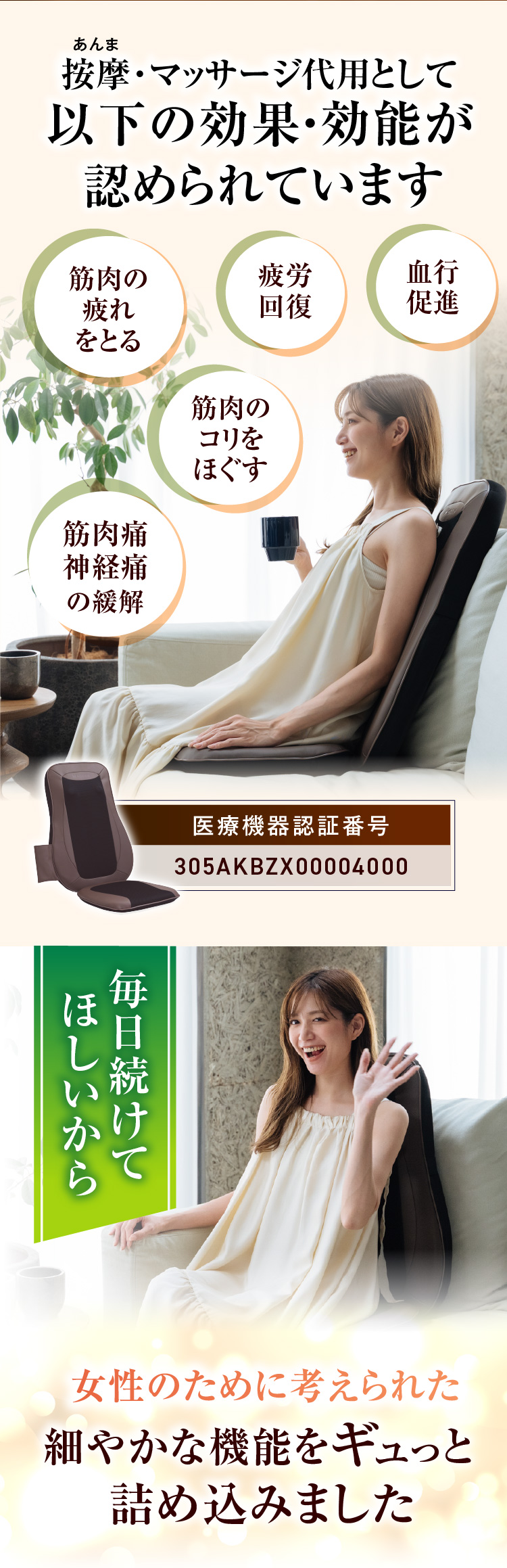 ・【 医療機器認証を取得 】… 本物の「マッサージ器」をお楽しみいただけるよう、医療機器認証を取得! 【 305AKBZX00004000 】