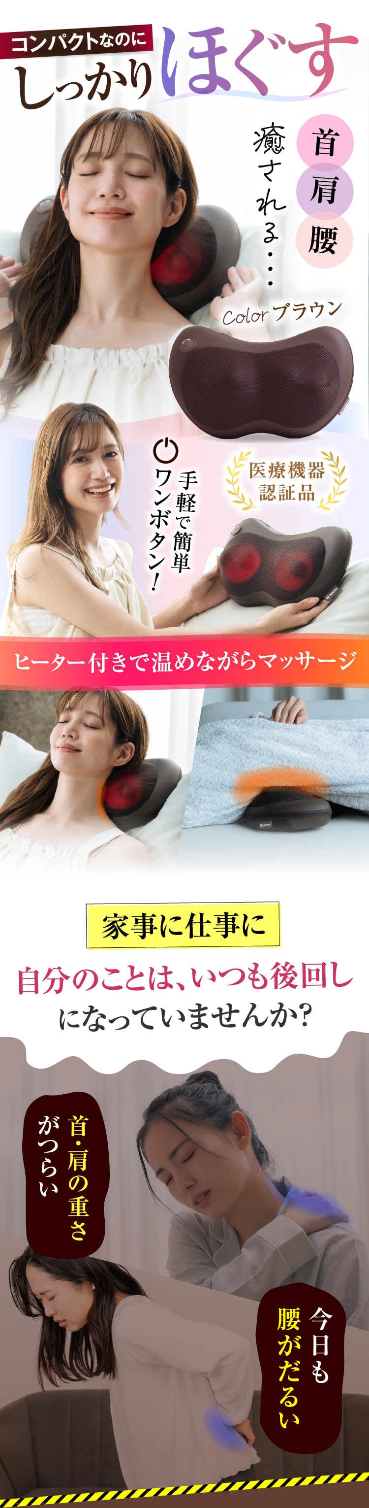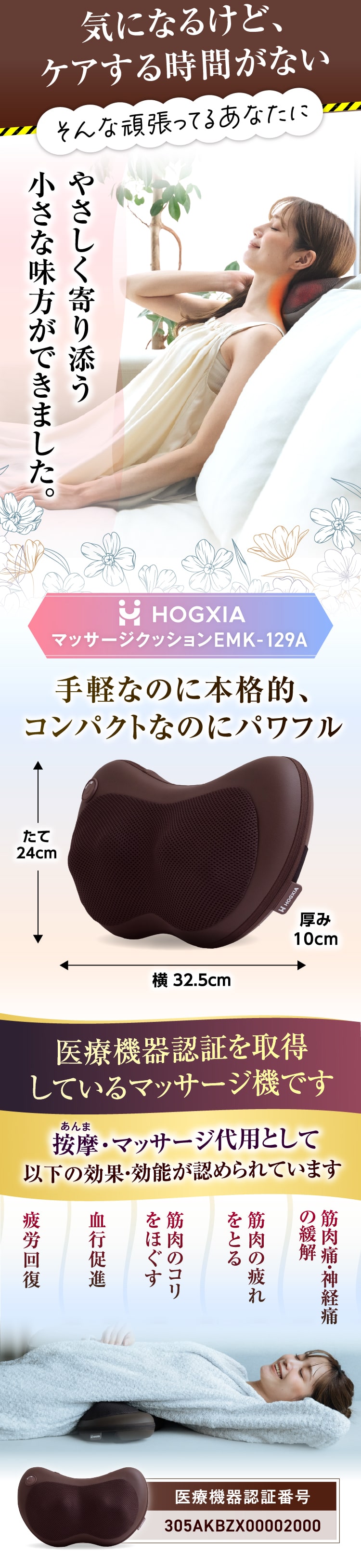 HOGXIA マッサージクッション 小型 強力 マッサージ器 医療機器 首 肩 ヒーター ホグシア HGX-129A あんま機 クリスマス マッサージ機 枕型 プレゼント