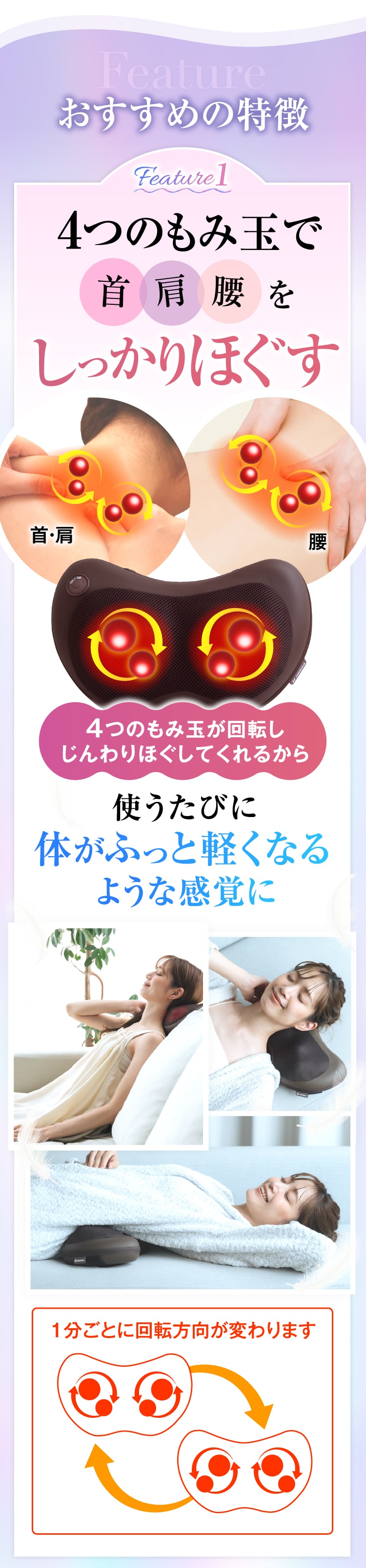 ・【 本格的な力強いもみを実現 】…大小4つのもみ玉が立体的に力強くマッサージします。