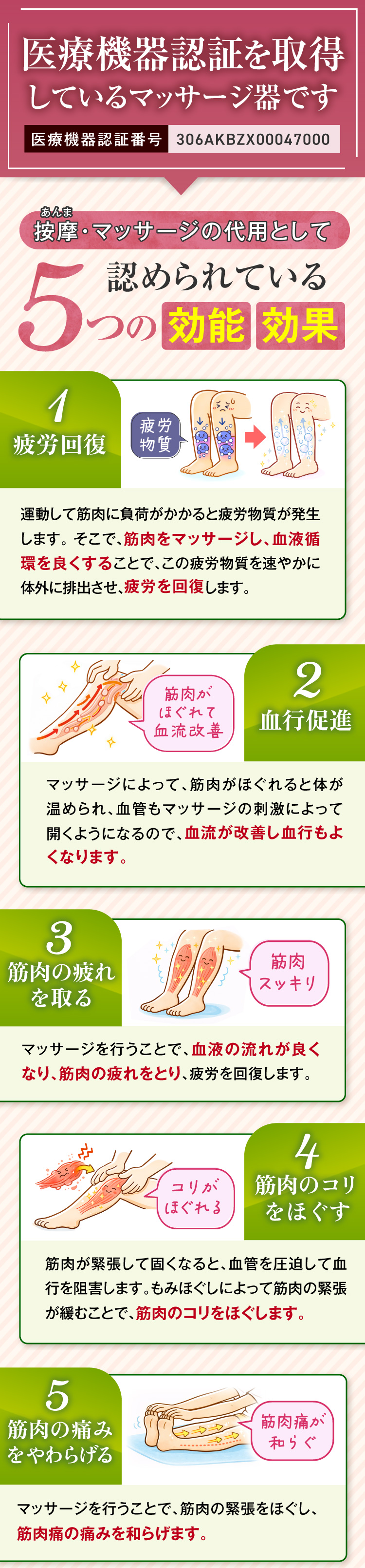 効 能 効 果:使用目的または効果(あんま・マッサージの代用)
