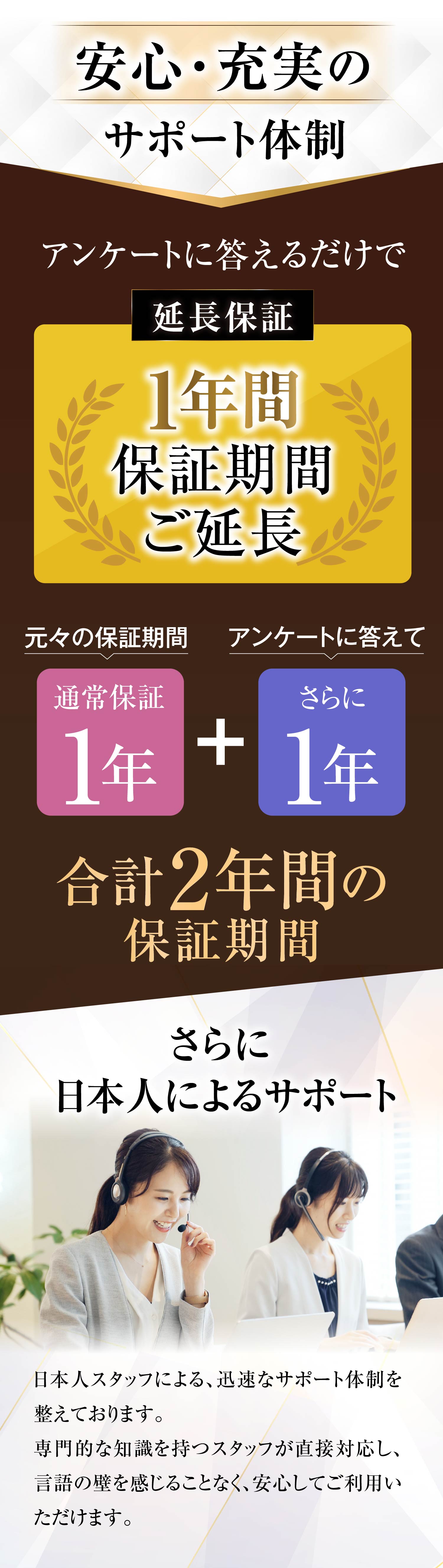 ・【 国内メーカーの1年間サポート 】…お客様に安心してご愛用いただけるよう、サポート制度を完備。