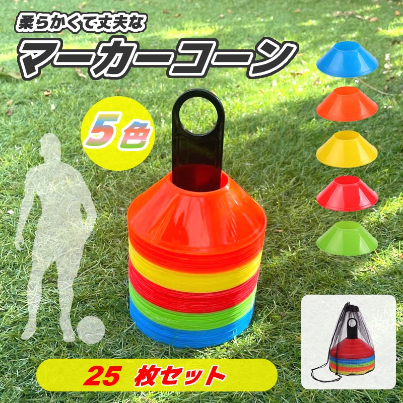 マーカーコーン 25枚 セット 収納袋付き スタンド カラーコーン ミニマーカー ディスク マーカー 収納 袋付き カラー 5色 軽量 柔らかい 素材