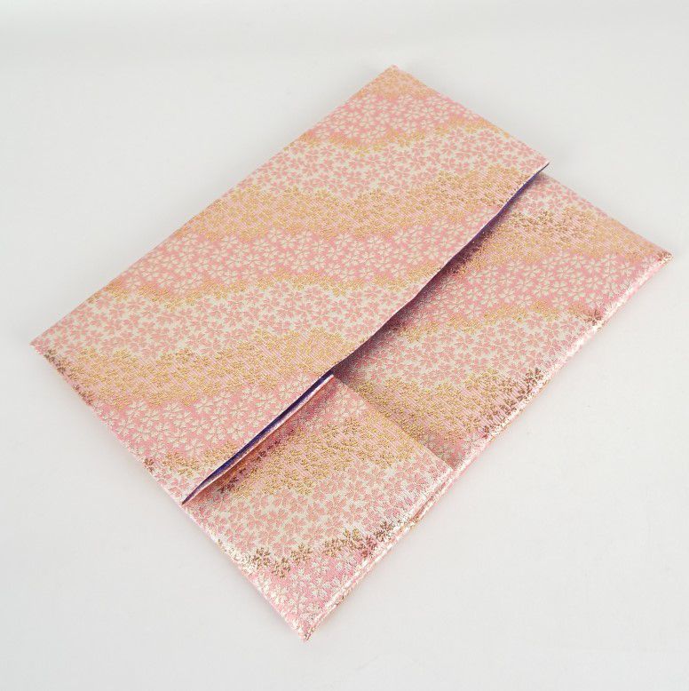 ふくさ 金欄位牌入れ 小 佐賀二丁 ピンク色 菩提寺への持ち運び袋 位牌包み 位牌袋 ふくさ 袱紗