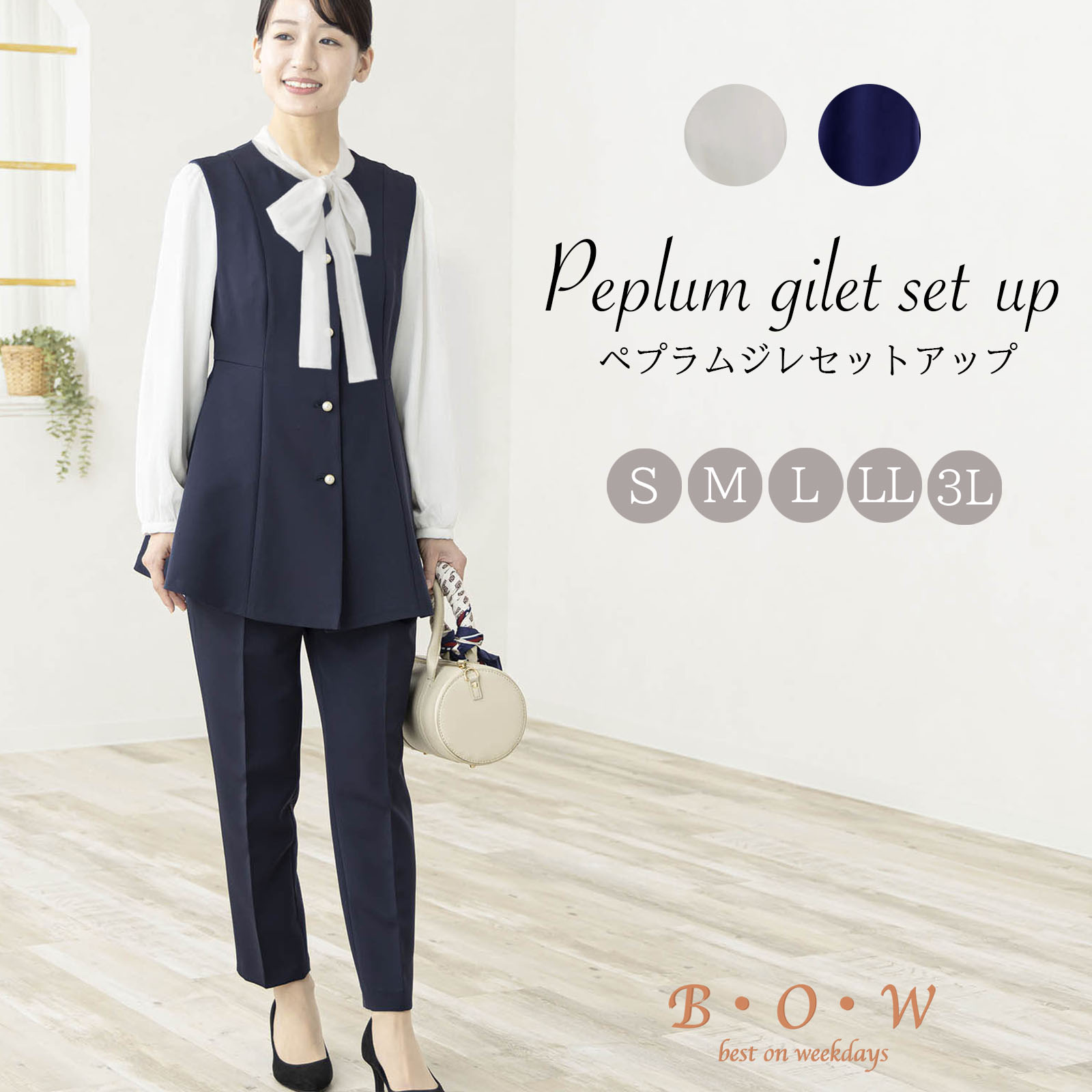セレモニー 卒業式 ジレ セットアップ テーパードパンツ レディーススーツ セレモニースーツ ママスーツ 2点セット パール 通勤 お出かけ フォーマル オケージョン 30代 40代 50代 入園式 入学式 卒園式 体型カバー 大きいサイズ bow