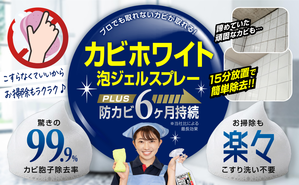 泡ジェルスプレータイプのため壁や天井に張り付き有効成分が持続します。