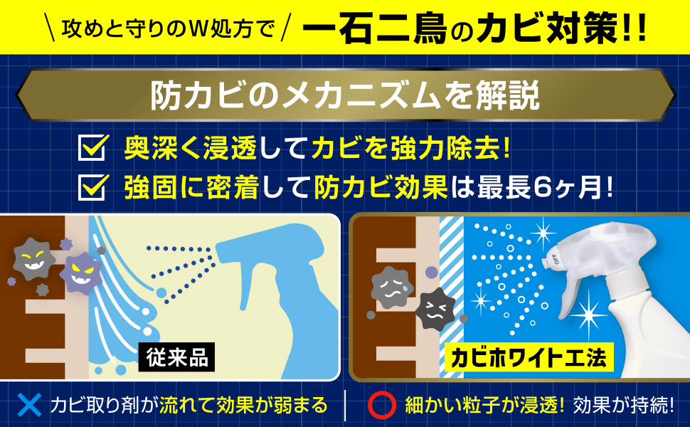 カビを取る だけでなく、 防カビ 機能付き!最長6ヶ月間 カビの 発生 を 抑制します。