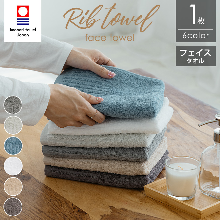 今治タオル フェイスタオル リブ 1枚 約34×85cm 日本製 綿100% 今治 吸水 速乾 薄手