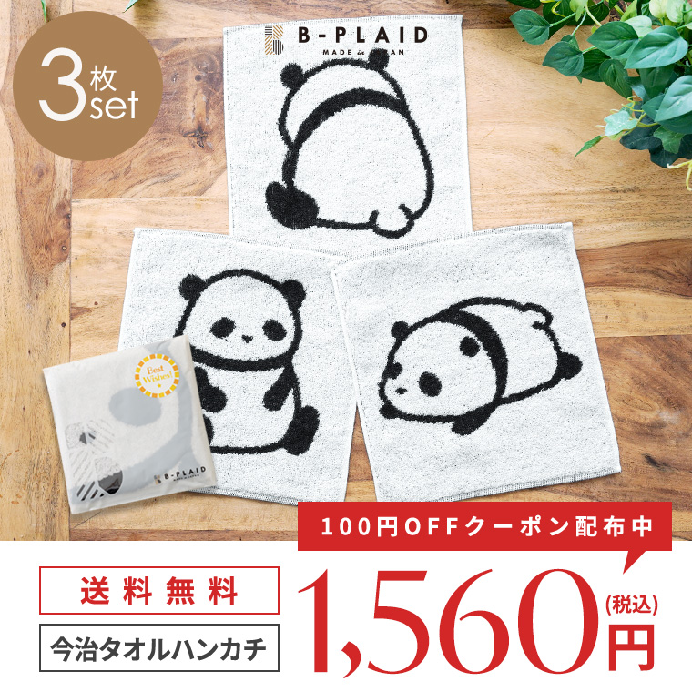 今治タオル ぱんだ ミニタオルハンカチ 3枚セット 20×20cm 日本製 綿100% まとめ買い ハンカチタオル ハンドタオル パンダ メンズ レディース ギフト モノクロ