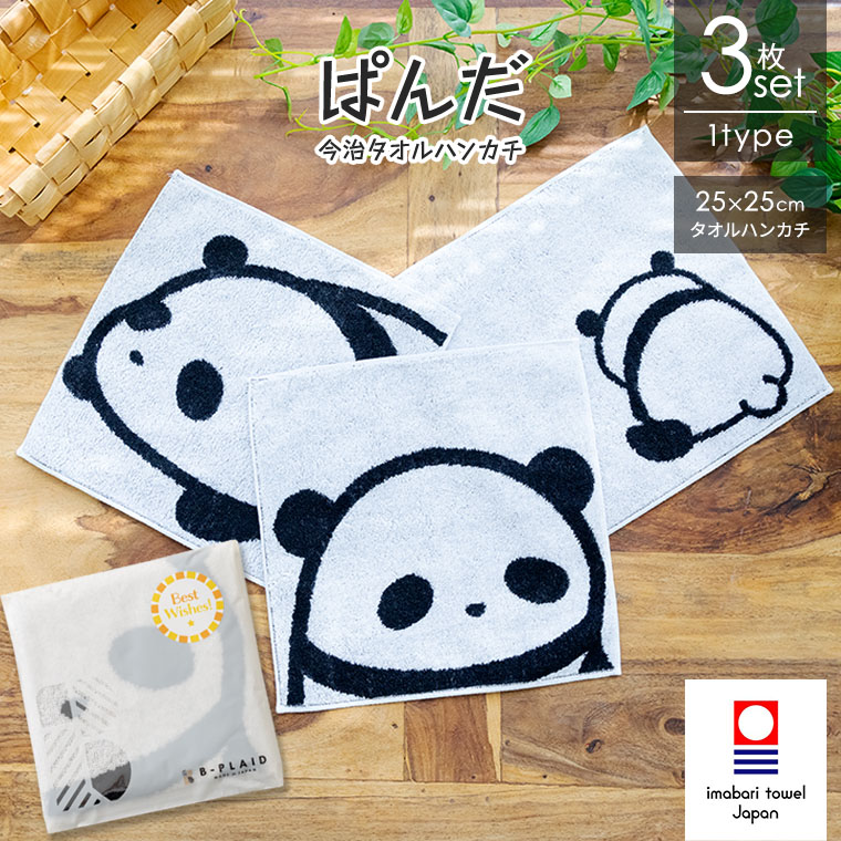今治タオル ぱんだ 3枚セット 約25×25cm 日本製 綿100% パンダ ギフト タオルハンカチ ハンカチタオル ハンカチ メンズ レディース