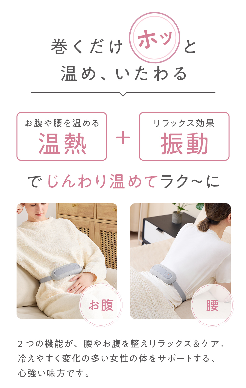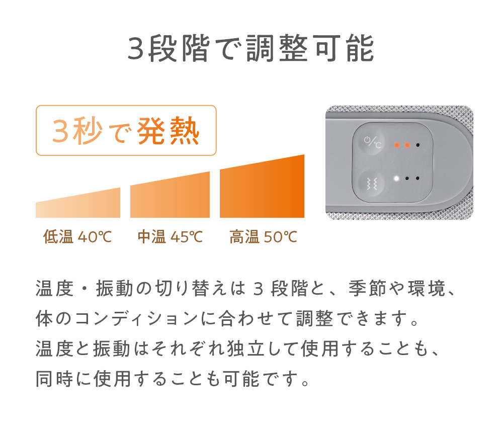 3段階の温熱と振動で、体の中心の「お腹」や「腰」を温めることにより、毎日のコンディションを整えましょう!