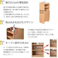 奥行き25.5cm、高さ90cmの薄型設計により、狭いスペースにもぴったり収まります。部屋を広く使いたい方に最適です。家庭やオフィスのデスク周りを整理するのに便利です。
