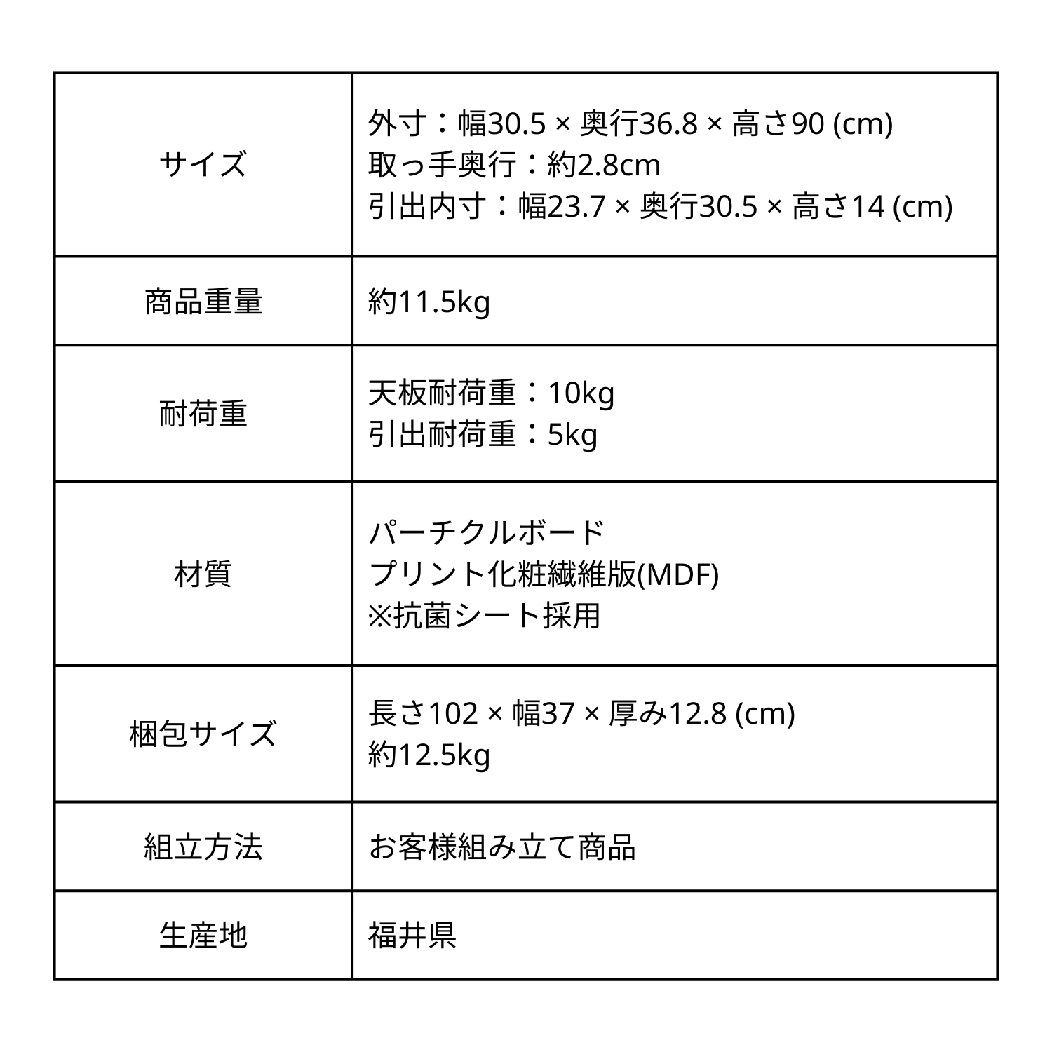 引出し耐荷重:5kg