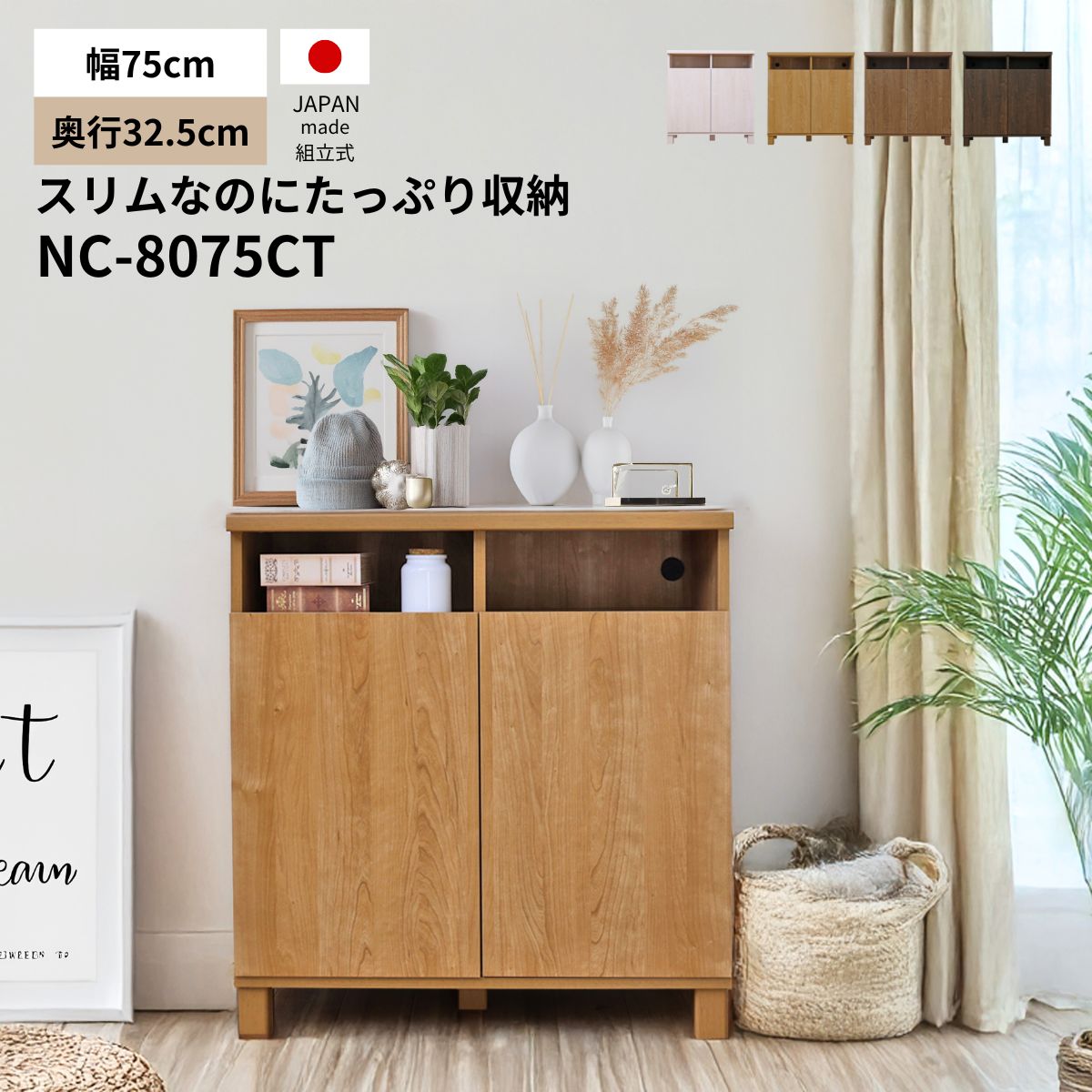 キャビネット 木製 本棚 リビング収納 2列 カウンター下 薄型 スリム 扉付 オープン 子供部屋 お片付け 木製 日本製 NC-8075CT 爆買
