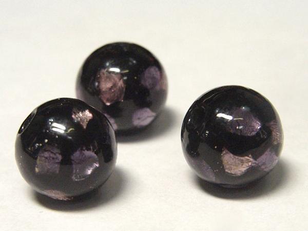 ◇トンボ玉連◇モザイク ラウンド 黒×紫 約10mm 約15個 06-0797