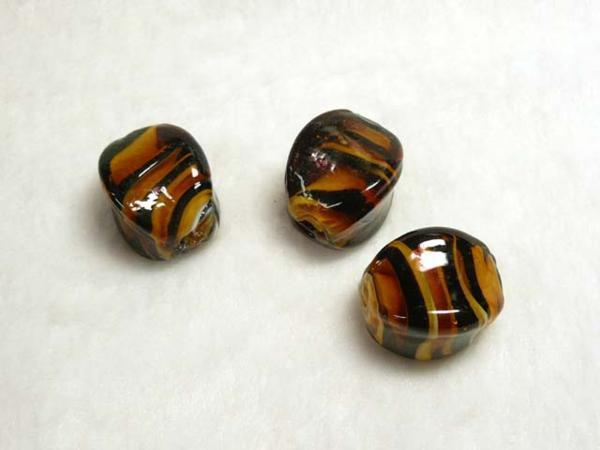 ■トンボ玉連販売■角柱 約24×18mm 約10粒 縞茶 06-1162