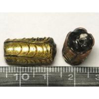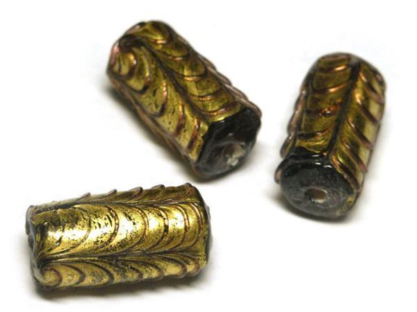◇箔入りトンボ玉◇円柱 黒 約18×10mm 約9粒 ブラック 06-1201