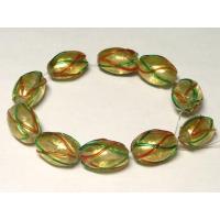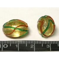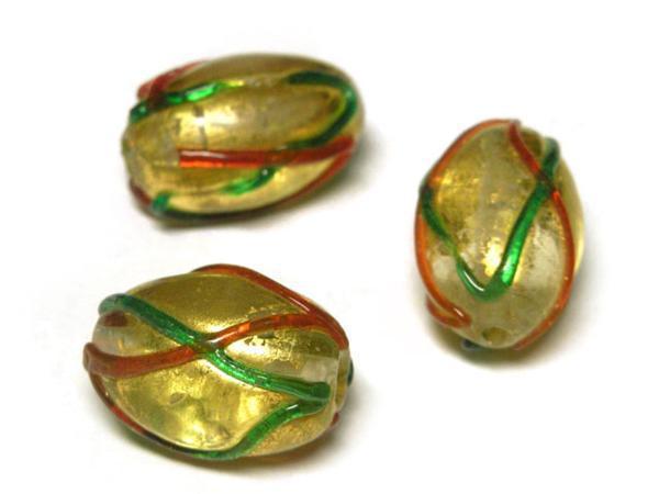 ◇箔入りトンボ玉◇オーバル 約17mm 約9粒 格子柄 06-1219